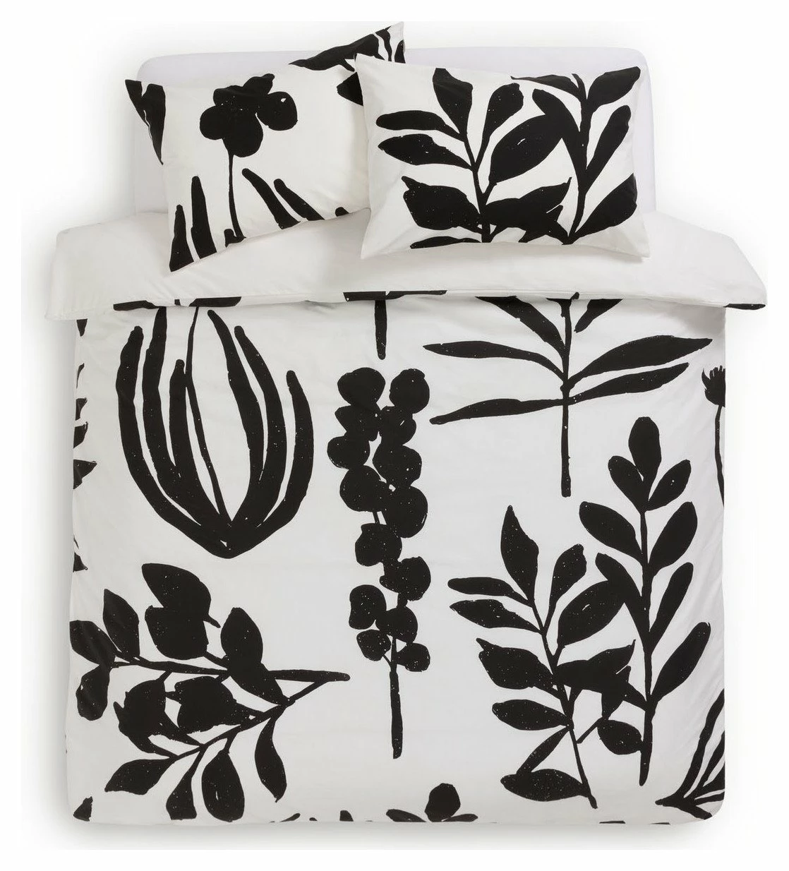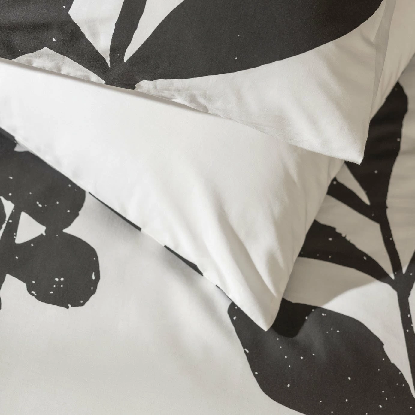 A botanical touch for your boudoir. Our dynamic duvet set features giant cut outs of leaves, flowers and blossoms. This bold monochrome design blooms in a neutral bedroom. The striking contrast of black and white create an ultra-modern feel that's right on trend. Soft in 100% percale cotton, it's comfy and easy to care for in equal measure. Leaf me here, just 5 more minutes.