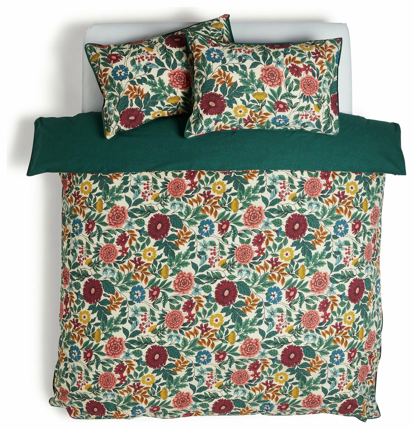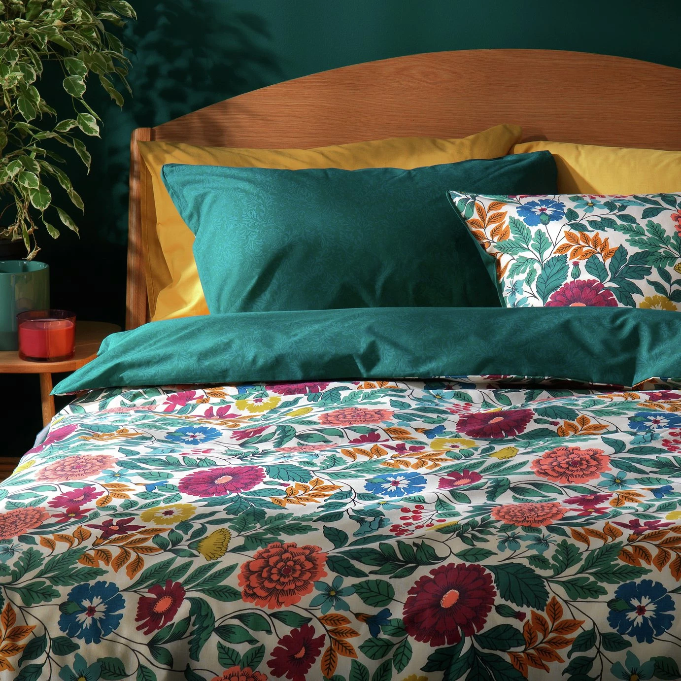 Brighten your bed with bold blooms. This single duvet set is part of our Country Manor collection and comes with 2 vibrant looks in 1. Colourful flowers on one side and a forest green jacquard on the other. Charmingly chintzy. Made from a poly-cotton blend, it's soft to the touch and easy to care for. Just the ticket for giving your bedroom a cosy, country feel.