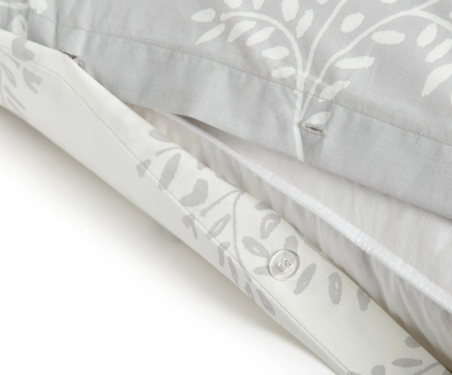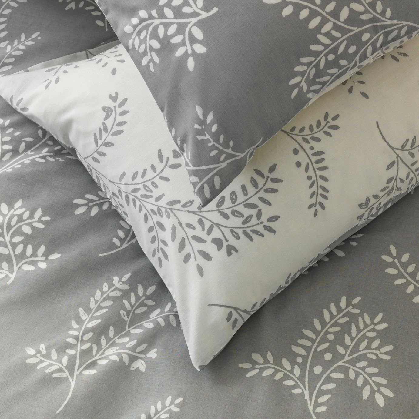 Fresh, floral and charming. Designed in tranquil grey and milky white, our polycotton single duvet set brings a peaceful, dreamy feel to your boudoir. This breathable and light bedding set helps keep your temperature steady to ensure a comfortable night's sleep. With a delicate flowery sprig pattern on either side, you can simply flip the set over whenever you fancy a new look. Snuggle in.