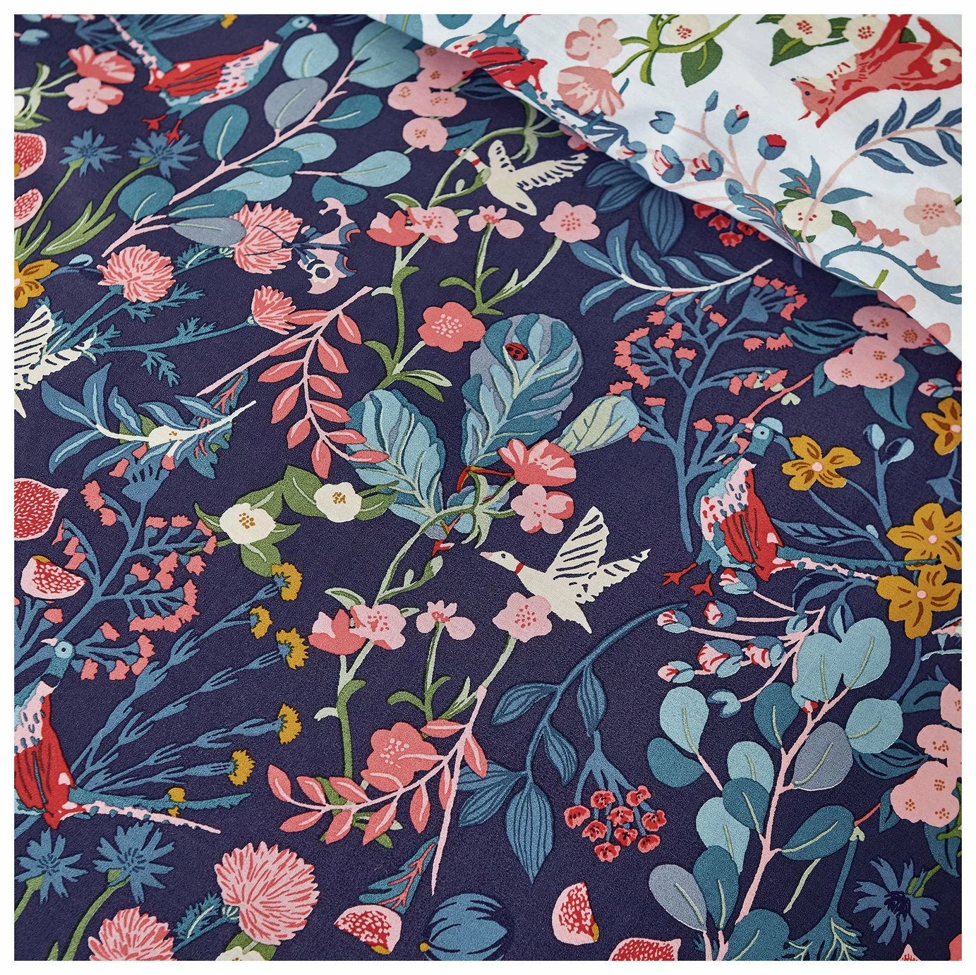 From squirrels and foxes to birds and butterflies, this bedding set brings together the best of the British woodland in one beautifully hand-drawn ditsy print. You'll be forever finding new things hidden amongst the whimsical print while the bold colours will brighten even the greyest of days. The animal adventures continue the reverse, set against a contrasting white background while the edges are finished with blue cord piping.