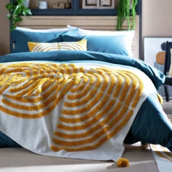 Habitat Floral Pattern Knit Throw – White & Green -125x150cm