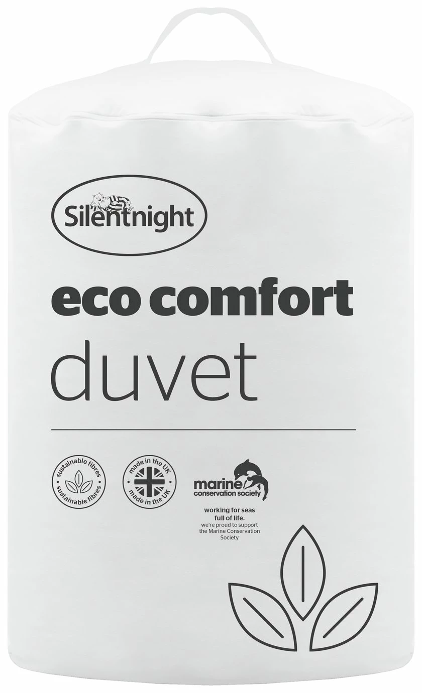 Sleep well knowing you're creating a better tomorrow, with the Silentnight Eco Comfort Duvet. The Eco Comfort Duvet is filled with high performance Eco Comfort Fibres™ made from 100% recycled plastic bottles which have been transformed into a luxuriously soft, light and fluffy fibre filling, bringing you incredible comfort throughout the night. Each duvet has prevented at least 32 plastic bottles going into landfill or our oceans. Encased in chemical treatment free embossed fabric.
