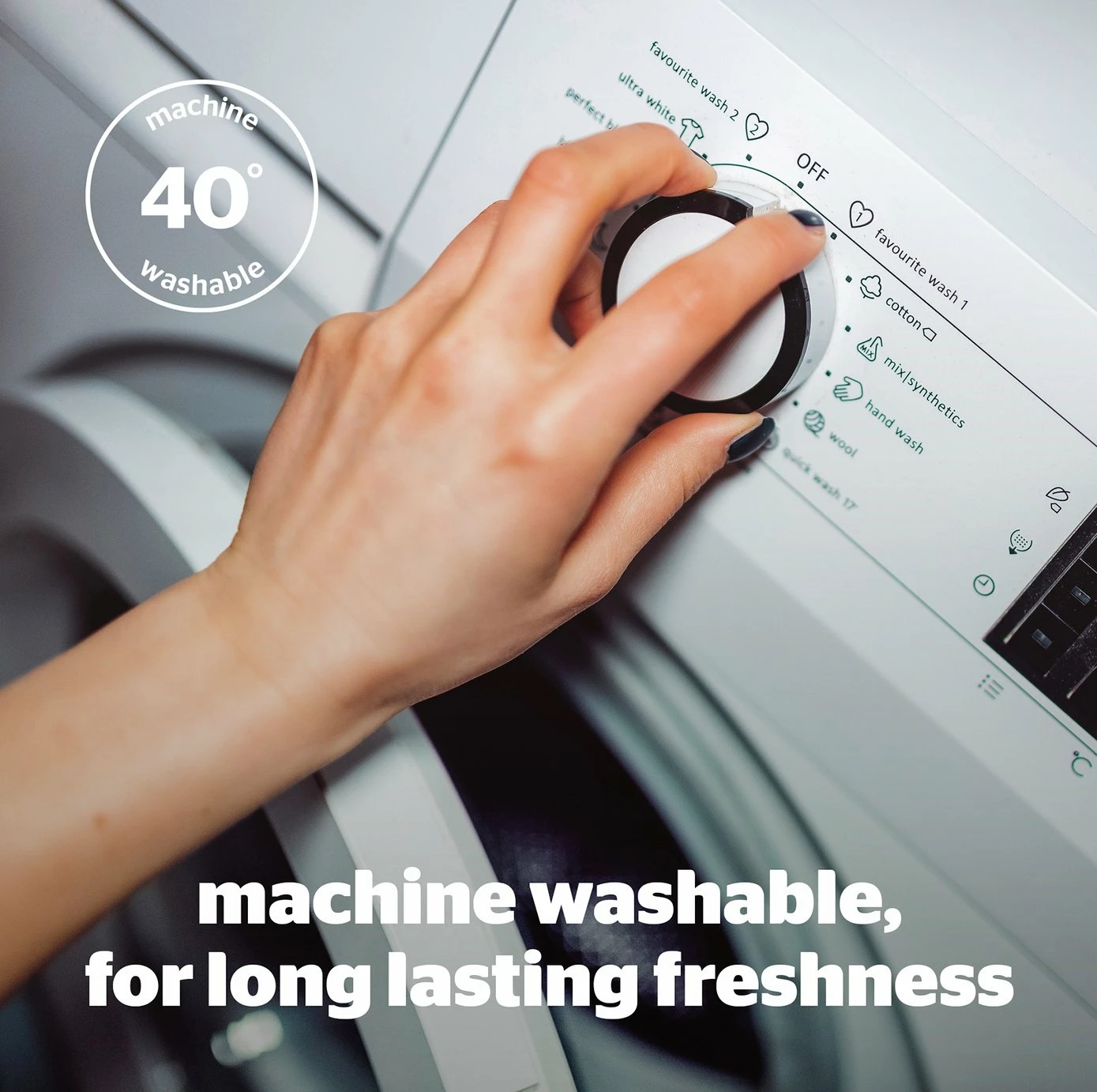 - Suitable for washing in a standard size washing machine.