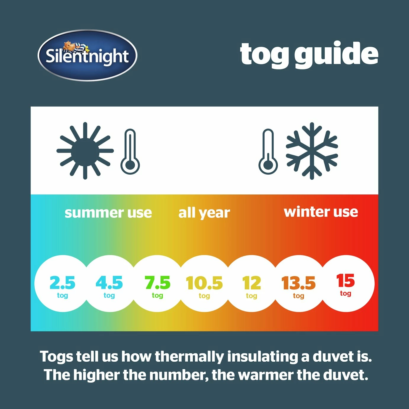 Indulge in the 5 star comfort of a hotel every night with this luxuriously soft and silky boutique style duvet, featuring an elegant embossed finish. The Silentnight Hotel Collection Duvet is encased in a wonderfully stylish and incredibly soft embossed cover and filled with the finest sumptuous fibres for luxurious comfort. The duvet is hypoallergenic which means it is kind to skin and does not include any contents likely to cause allergies. You can keep enjoying hotel quality night after night as it's are fully machine washable.