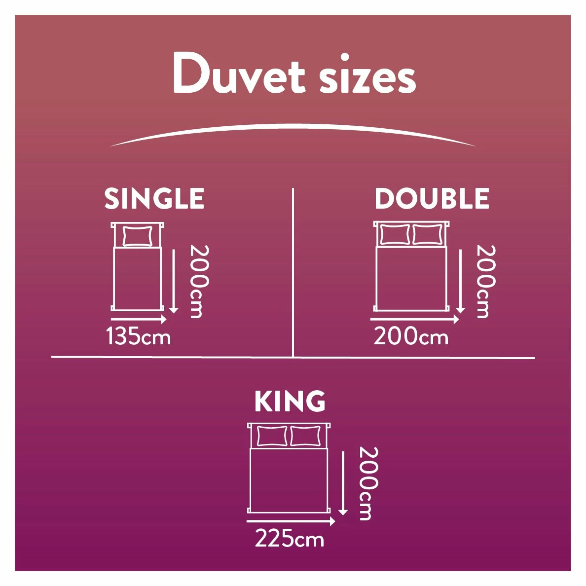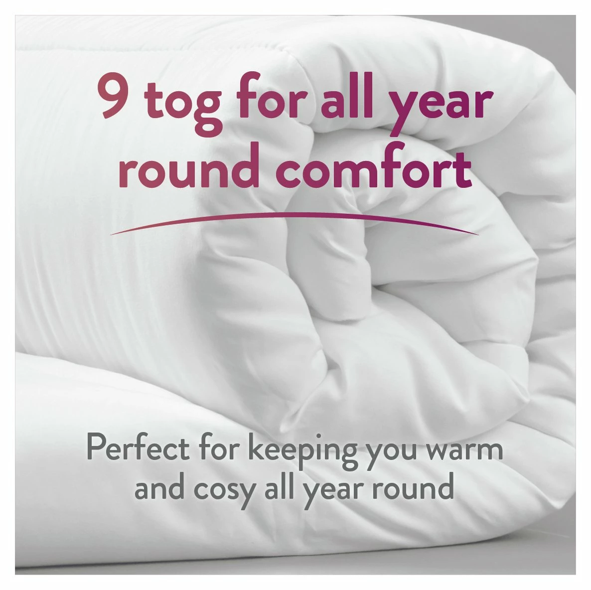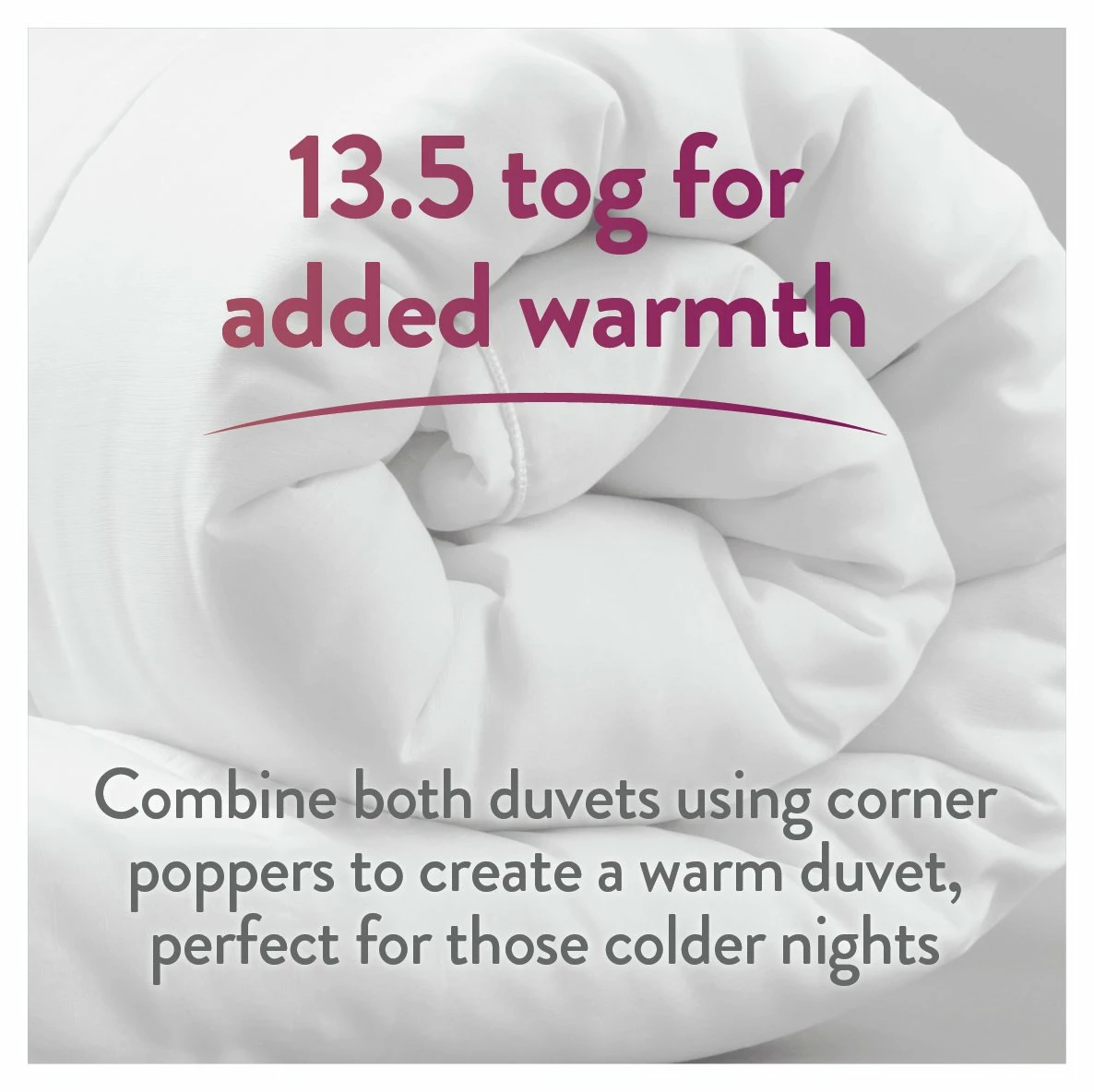 At Slumberdown, we believe every body deserves a better night sleep. The All Seasons Duvet is perfect for all year round use. The 4.5 Tog duvet keeps you cool on warmer nights and the 9 Tog is perfect as temperatures drop. The duvets can be combined with corner poppers to create a 13.5 Tog duvet, which will ensure you stay warm on the cold nights. What's more, the product is Easy Care which means its machine washable and can be tumble dried.