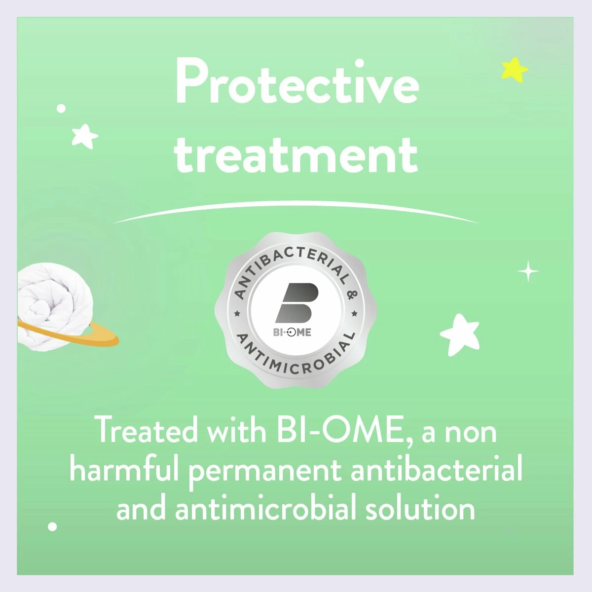 The Slumberdown Little Slumbers Anti Bacterial Cotton duvet has been designed for children. It is carefully formulated with a permanent, antibacterial, antimicrobial, non-harmful odour control treatment, BI-OME® which protects textiles from the build-up of dustmites and odour causing bacteria. The reduced fill ensures your little one won't overheat at night. Independently tested by experts, so your little ones can enjoy a comfier, fresher and healthier sleep space. What's more this is Easy Care so can be machine washed and tumble dried.