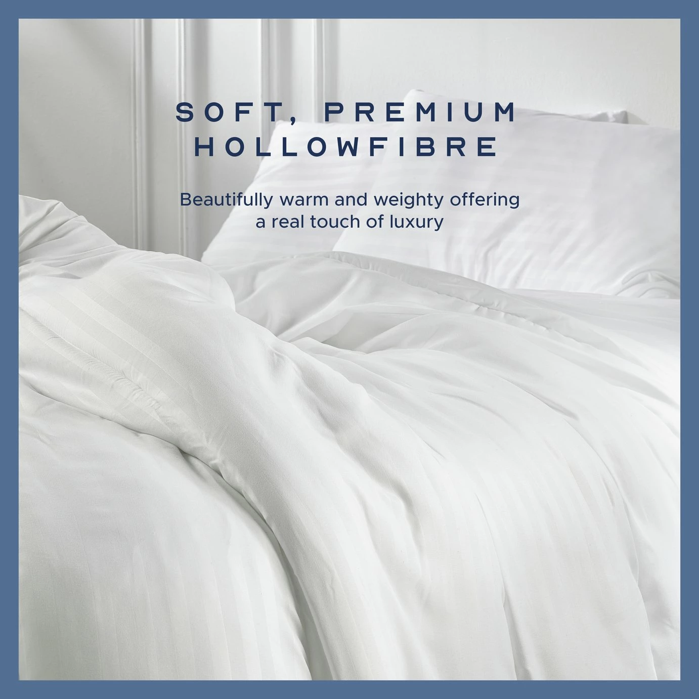 The Snuggledown Luxurious Hotel 10.5 Tog Duvet offers hotel quality luxury in the comfort of your own home. With wonderfully soft-touch embossed covers and silky soft hollowfibre filling, you get that indulgent hotel luxury feeling night after night. Offering unsurpassed comfort, this 10.5 Tog duvet is perfect for all year round use, so you can sleep easy whatever the season. Made in the UK, Packaging contains 30% recycled content minimum.